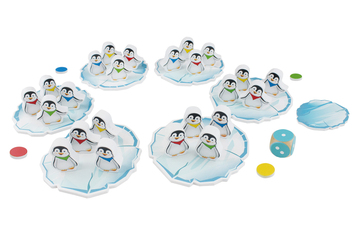 Igra podpira prve korake pri štetju in pomaga razvijati pregled nad potekom igre. Spodbuja pogovor o globalnem segrevanju ter ozavešča o pomenu varovanja okolja. Igralci sodelujejo in si pomagajo, da skupaj dosežejo zmago.Igra vsebuje 7 lesenih ledenih plošč, 24 figuric pingvinov, 4 igralne žetone in igralno kocko. Starost: 4+